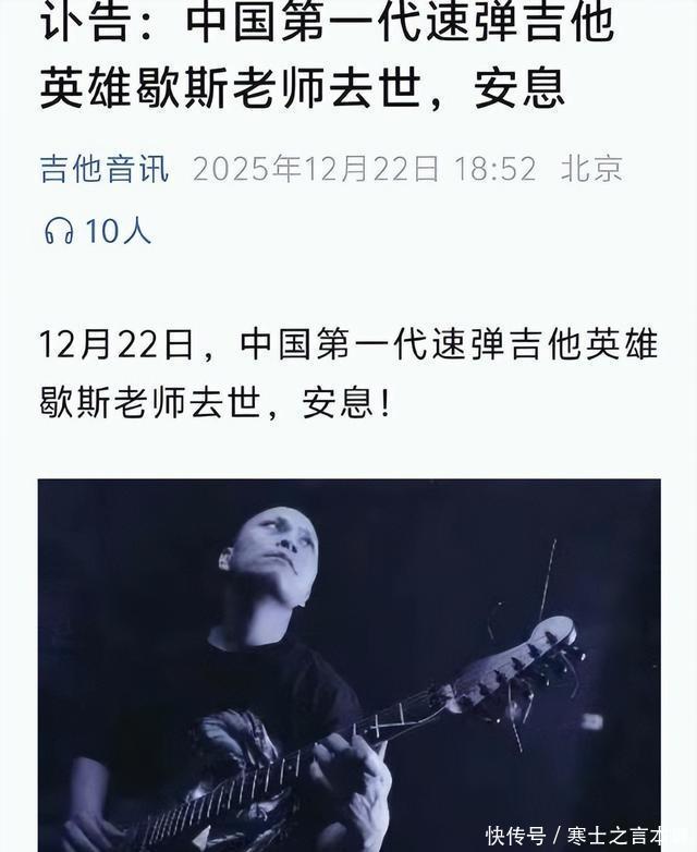 突发!中国第一代速弹吉他手“歇斯”去世,年�岁,疑心梗导致